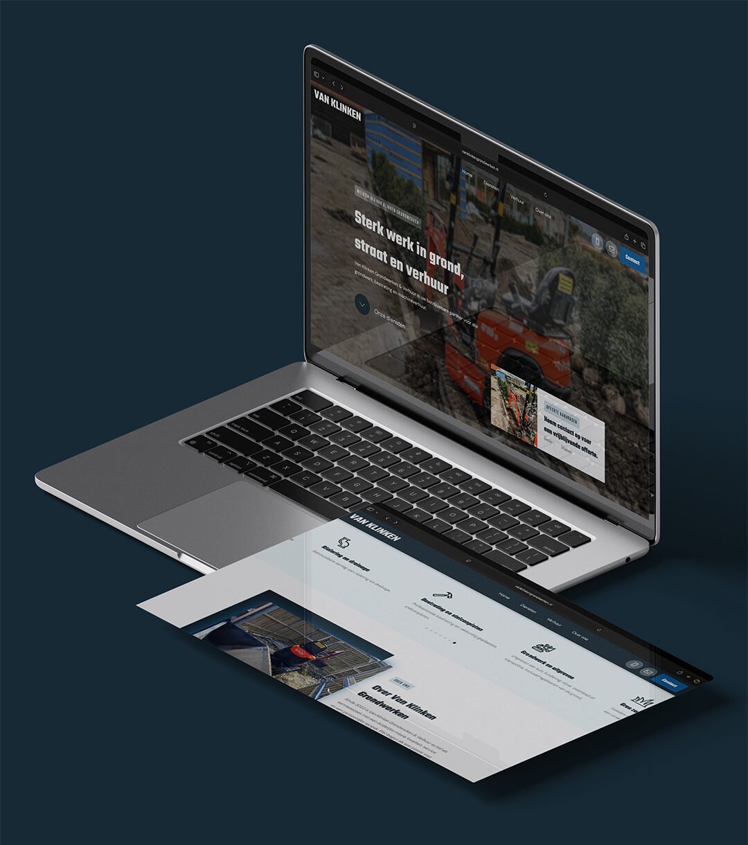 Voor Van Klinken Grondwerken & Verhuur mocht Slabbekoorn Media de volledige online en offline presentatie realiseren. We ontwikkelden een moderne, overzichtelijke website en strak vormgegeven visitekaartjes die aansluiten bij de nuchtere en professionele uitstraling van het bedrijf.